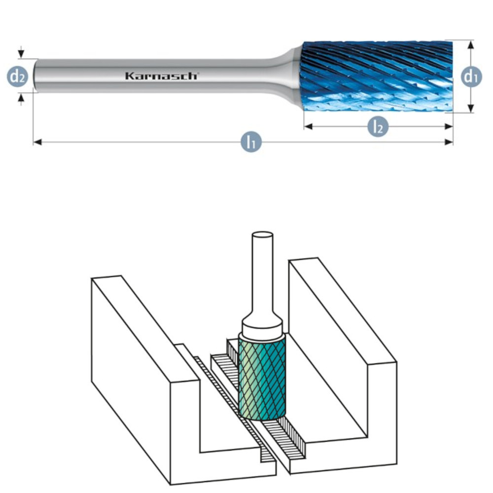 HM Frässtift Ø=3-16mm, 115017, ZYB, für Titan, Inconel, Edelstahl, HP1, Blue-Tec beschichtet