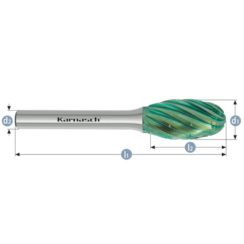 HM Frässtift, Ø=6-16mm, Serie 116094, Tropfenform, HP3 PRO, beschichtet, Green Tec