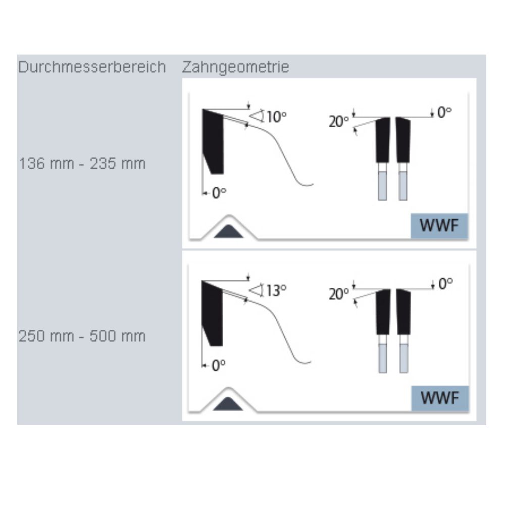 Schwerpunkt ist das Trennen von Profilmaterial sowie Bleche bis ca. 8 mm Wandstärke. Durch spezielles Hartmetall, Geometrie sowie Stammblatt wird die Standzeit gegenüber unseren Dry-Cutter Baustähle-Bättern (Art. 10.7100) in den Ø 250-355 mm nochmals wesentlich erhöht, als Universalblatt auch einsetzbar für Sandwich-Materialien.