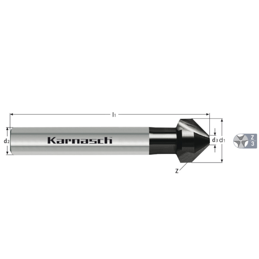 Kegelsenker VHM, Karnasch, 90 Grad, UFX-2 beschichtet, Ø d1=6,3-31,0mm