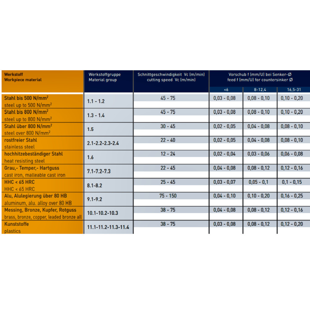 Produktinformationen "Kegelsenker VHM, Karnasch, 90 Grad, UFX-2 beschichtet, Ø d1=6,3-31,0mm"