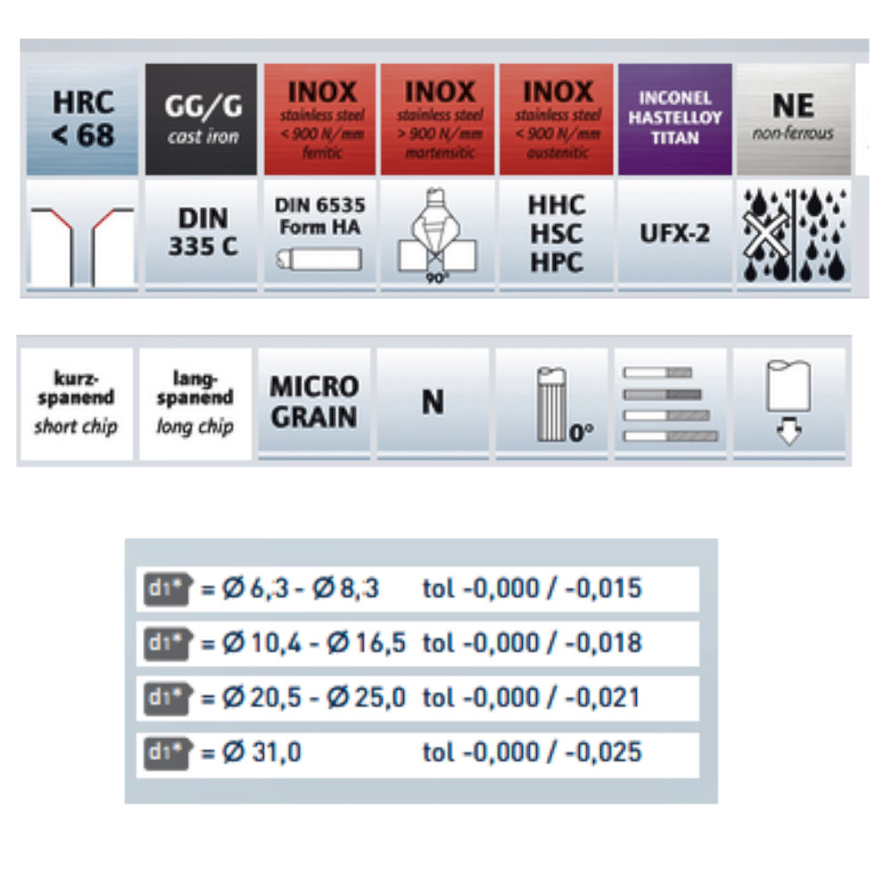 geeignet für Legierungen, Stahl, Titan, Gusseisen, Aluminium