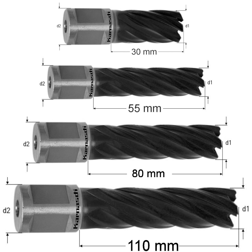 Produktinformationen "Kernbohrer, Weldon, Nutzlänge 30, 55, 80, 110mm, Blue-Line, d1=12-60mm, Durablue"