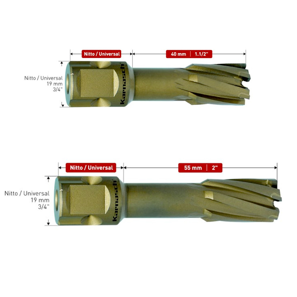 Kernbohrer, Hartmetall-bestückt, Nitto Uni Schaft, Nutzlänge 40, 55, 80, 110mm