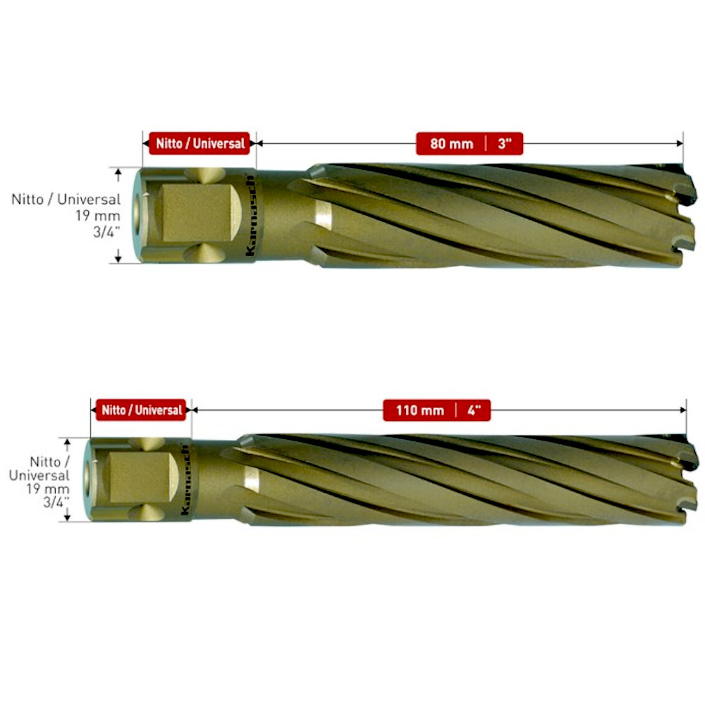 Produktinformationen "Kernbohrer HM, Nitto Uni Schaft, Nutzlänge 40, 55, 80, 110mm, Hard-Line, d1=12-65mm"