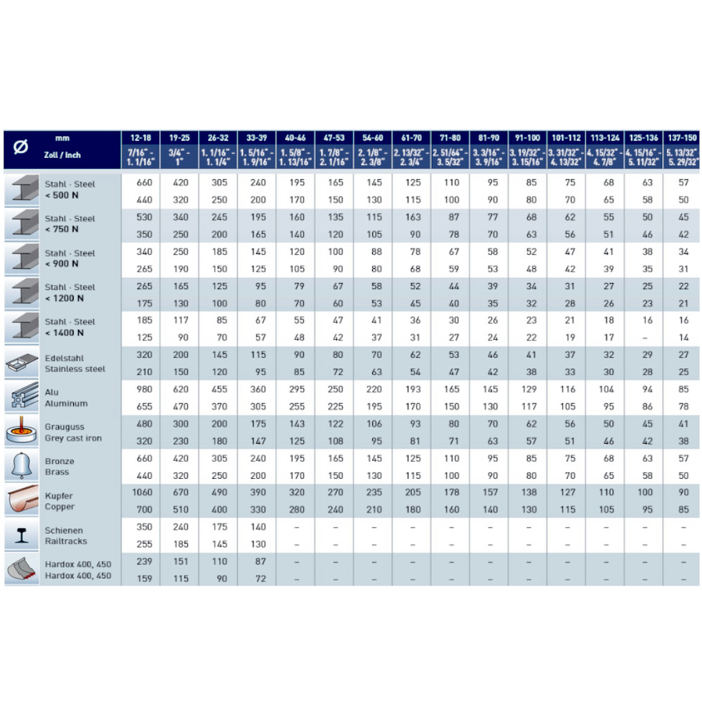 Schienenbohrer, für alle Schienentypen bis 1100 N [UIC 60]. Der Bolzen ist nur notwendig, wenn Aufnahmehalter mit Innenkühlung verwendet werden.