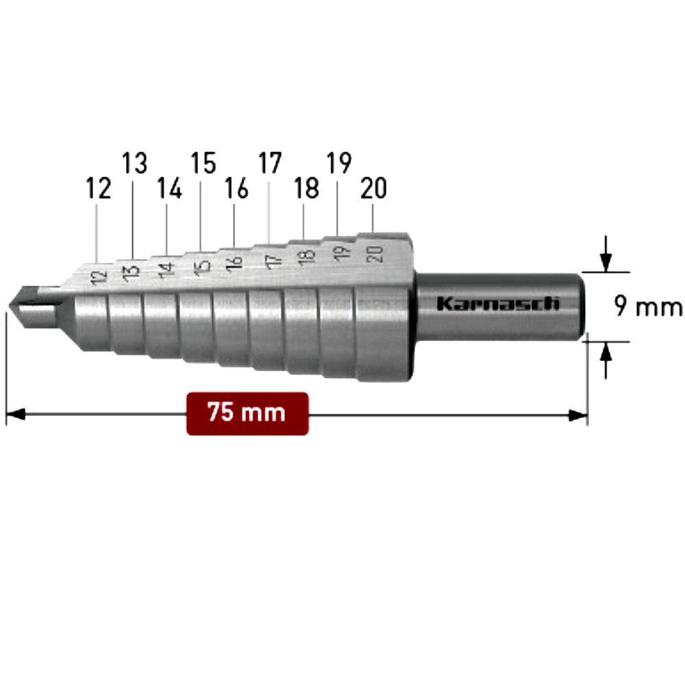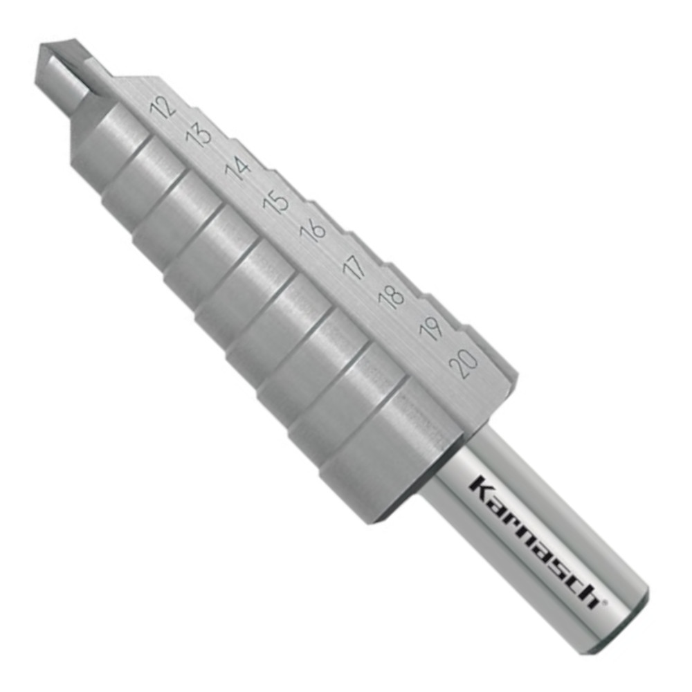 Produktinformationen "Stufenbohrer Spirale HSS-XE, d=12-20 mm, CBN, 2 Schneiden, Kegelbohrer, Karnasch"