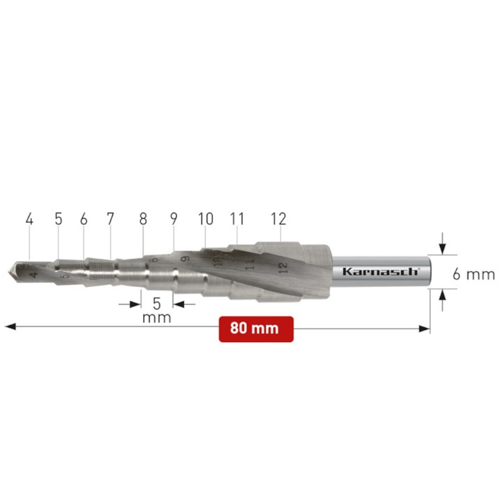 Stufenbohrer von Karnasch von 4 bis 12mm, unbeschichtet, CBN geschliffen