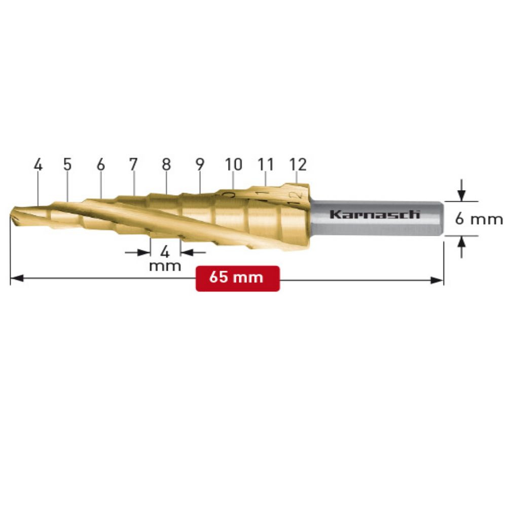 Stufenbohrer Spirale HSS-XE TIN Gold beschichtet, Karnasch, CBN, d=4-12mm