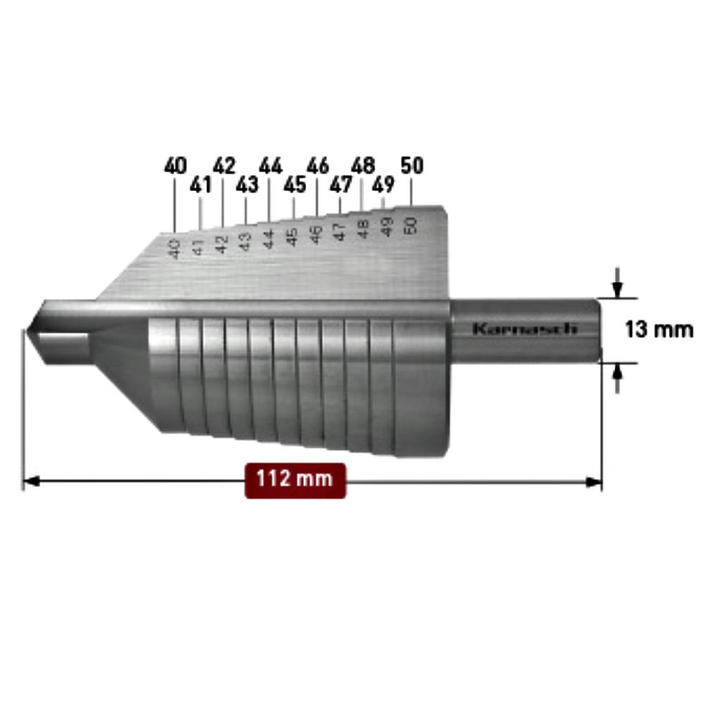Stufenbohrer, HSS-XE, d=40-50 mm, CBN, 2 Schneiden, Kegelbohrer von Karnasch