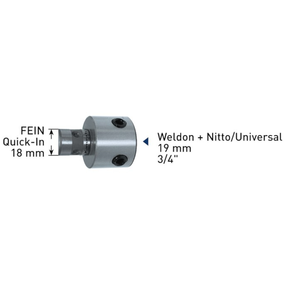 Adapter mit Bohrung 7,98mm für die Nutzung von Weldonschaft + Nitto-Universal Schaft 19mm (3/4) Kernbohrern auf FEIN Quick-In Maschinen.