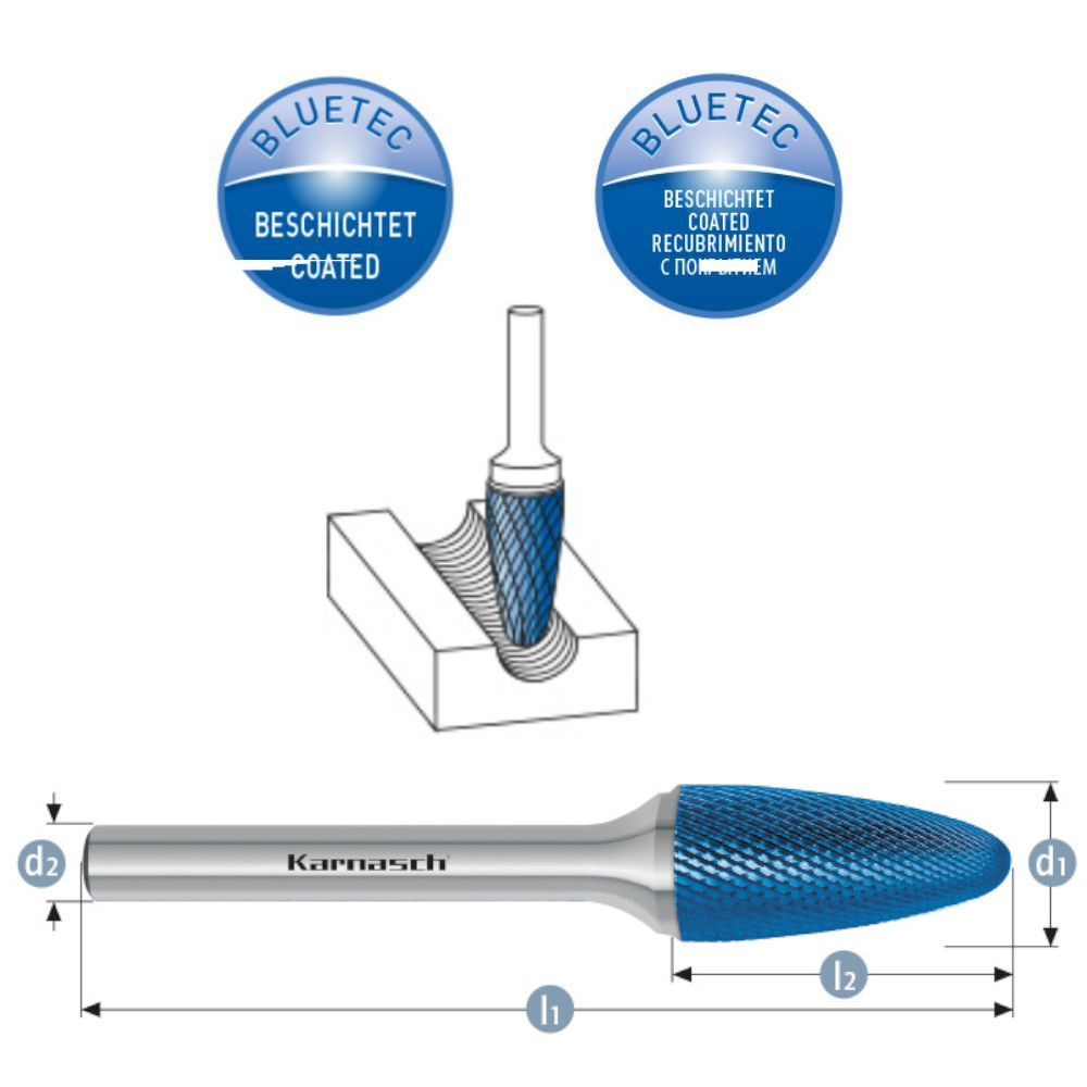 Frässtift, Rundbogenform, HP-11 extrem feine Kreuzverzahnung, Blue-Tec