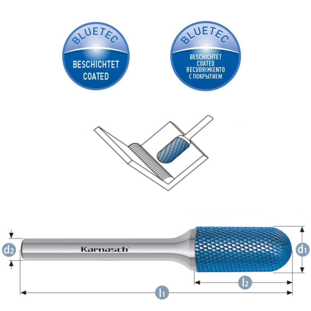 Frässtift, Walzenrundform, HP-11 extrem feine Kreuzverzahnung, Blue-Tec