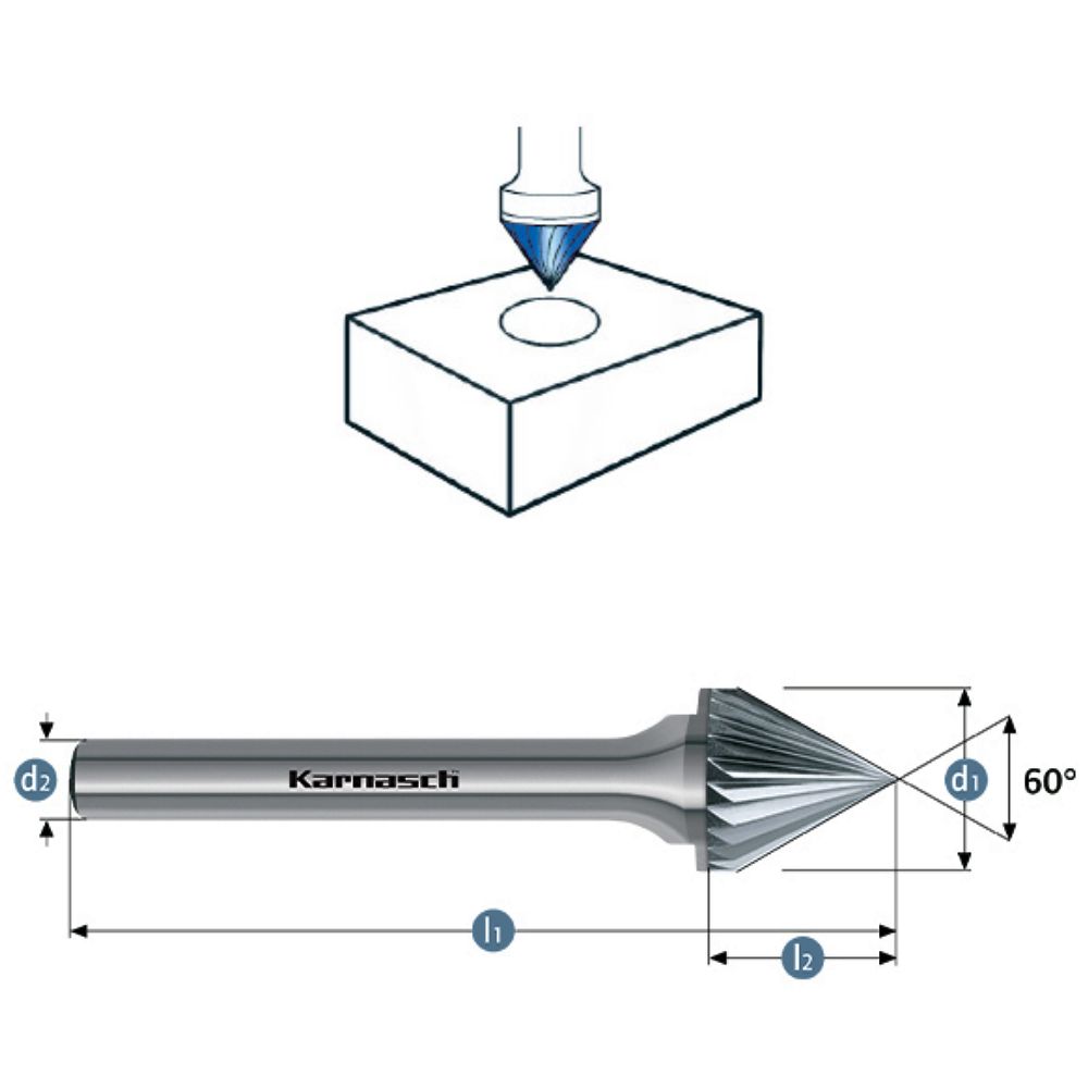 Produktinformationen "Frässtift Hartmetall, Kegelform KSJ, Ø=3-12mm, Winkel 60°, unbeschichtet, HP2"