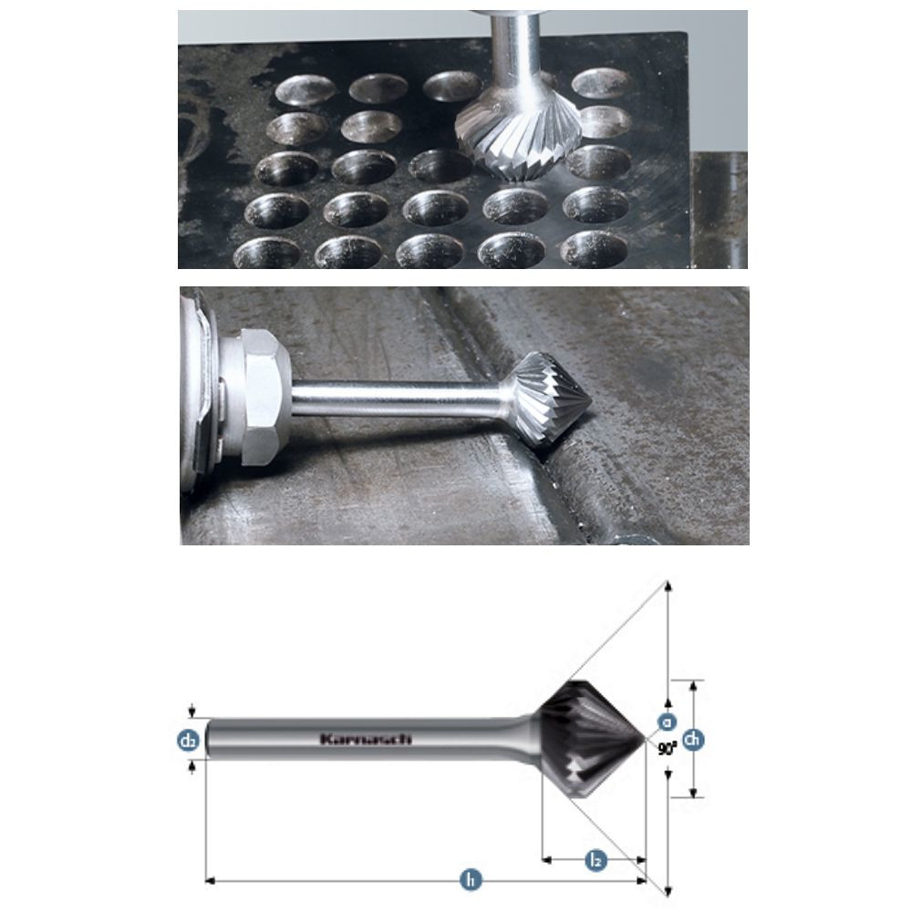 Rotierfräser, COMBI+FORM, Form KSK+KSK, Kegel 90° + Kegel 90°, unbeschichtet
