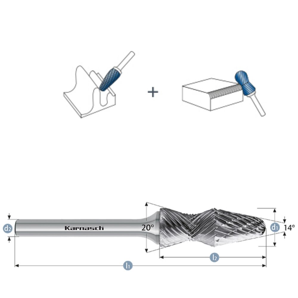 HM Frässtift, Form KEL + Rundkegel Ø=12,0 / l2=35 / Schaft=6 / Länge=80mm / 14°, Combi Curve