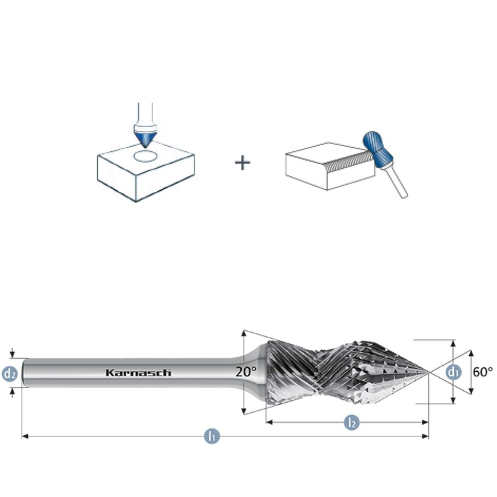 HM Frässtift, Form KSJ + Kegel 60° Ø=12,0 / Schaft=6 / Länge=73mm, Combi Curve