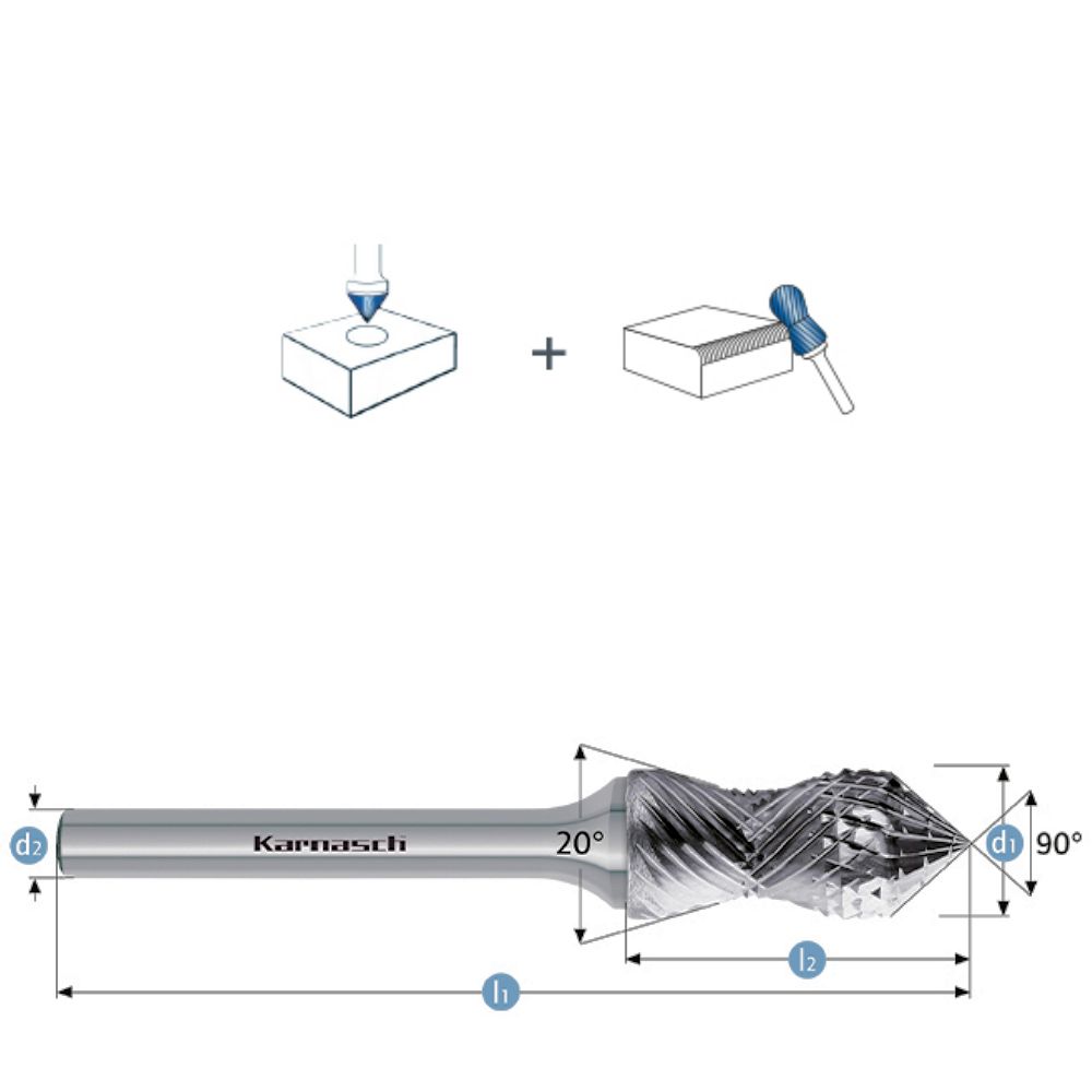HM Frässtift, Form KSK + Kegel 90° Ø=12,0 / l2=31 / Schaft=6 / Länge=76mm, Combi Curve