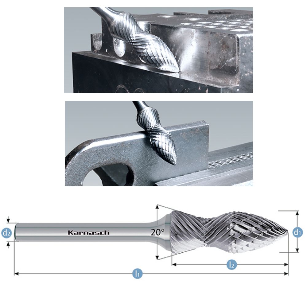 Produktinformationen "HM Frässtift Rotierfräser, Form SKM + Spitzbogen Ø=12,0 / Schaft=6 / Länge=80mm, Combi Curve"