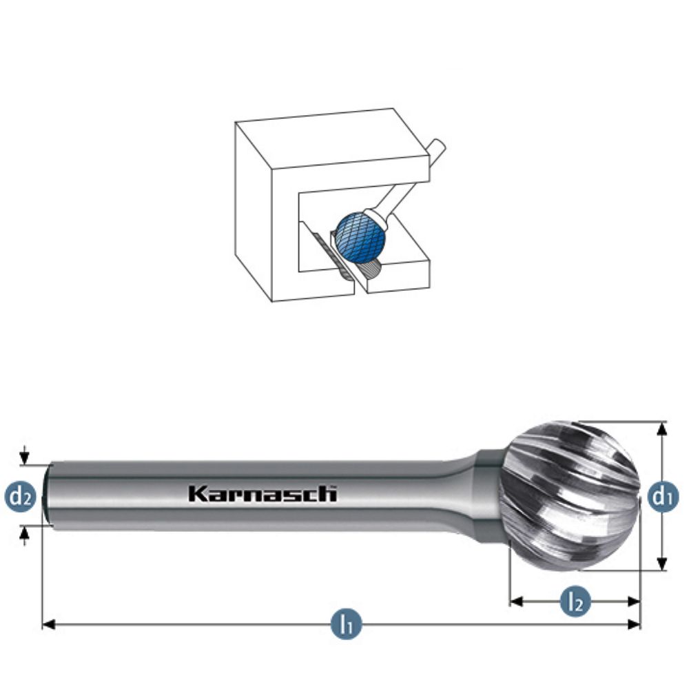 Produktinformationen "HM Frässtift, Ø=3,0-12mm, speziell für Edelstahl, KUD, Kugelform, HP9"