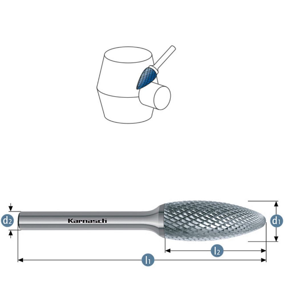 Produktinformationen "HM Frässtift, Ø=3,0-16mm, feine Kreuzverzahnung, 113072, Flammenform, unbeschichtet HP4"