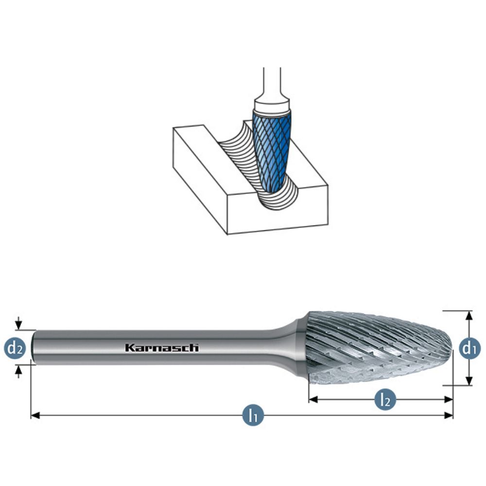 Hartmetall Frässtift, RBF, Rundbogen, HP-1 Verzahnung, unbeschichtet.