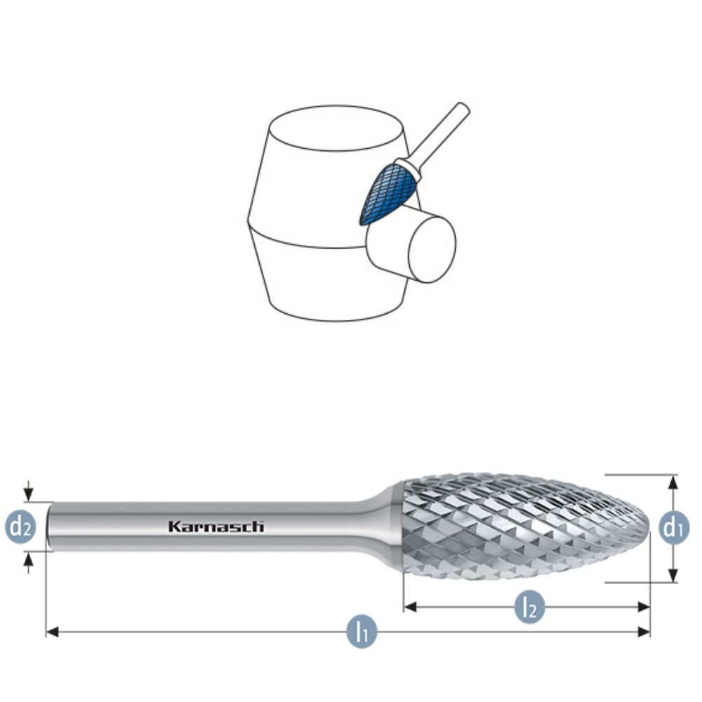 Dieser Frässtift in Flammenform besitzt eine extrem grobe HP6 Kreuzverzahnung