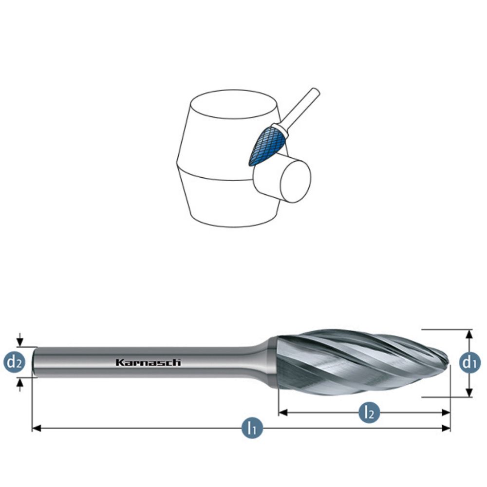 Produktinformationen "HM Frässtift, Ø=8,0-16mm, für NE-Metalle, Kunststoffe, 113075, Flammenform, unbeschichtet HP7"