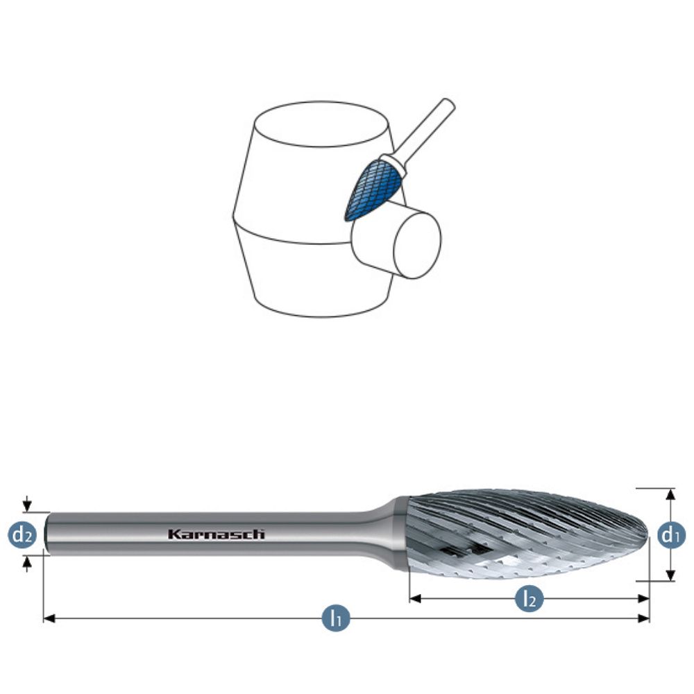 HM Frässtift, Ø=3,0-12mm, robuste Kreuzverzahnung, 113077, Flammenform, unbeschichtet HP1