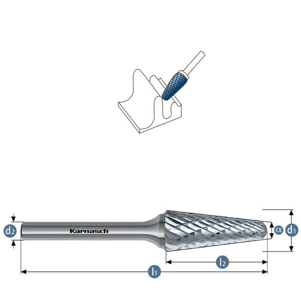 Hartmetall Frässtift, KEL, Rundkegelform, HP-6 Verzahnung, unbeschichtet.