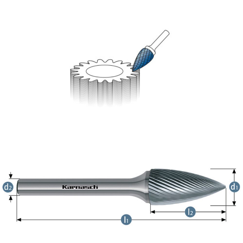 Hartmetall Frässtift, SKM, Spitzbogenform, HP-5 Verzahnung, unbeschichtet.