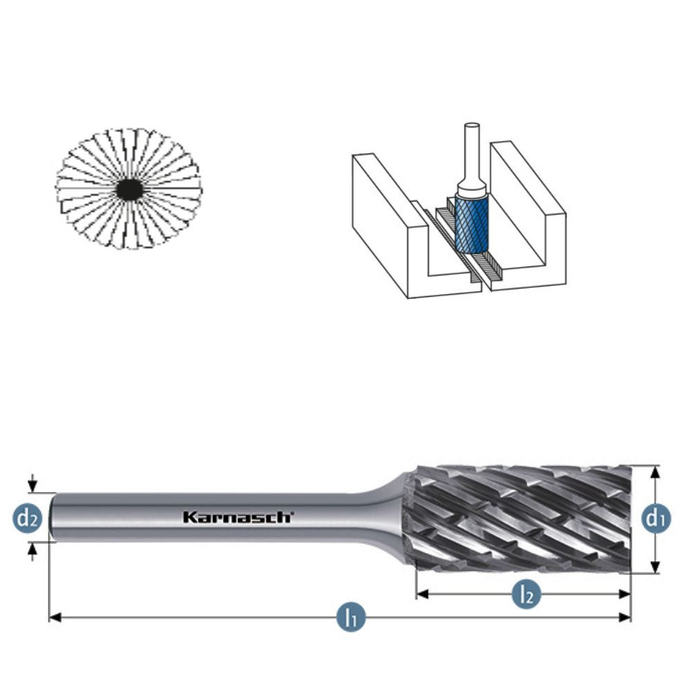 Produktinformationen "HM Frässtift ZYB Zylinderform, HP8, Ø= 6-12mm, für Stahl und Gusseisen"