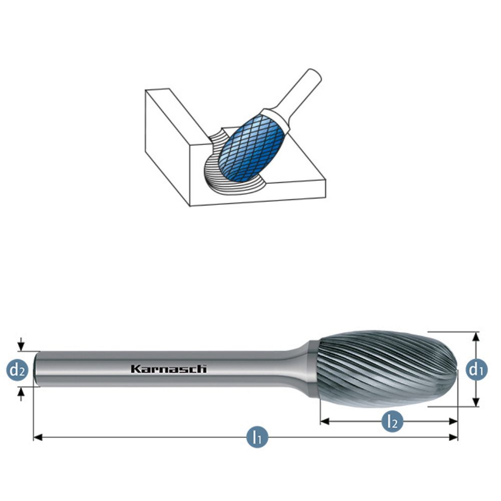 HM Frässtift, Ø=3,0-16mm, Serie 113043, Tropfenform, unbeschichtet HP5