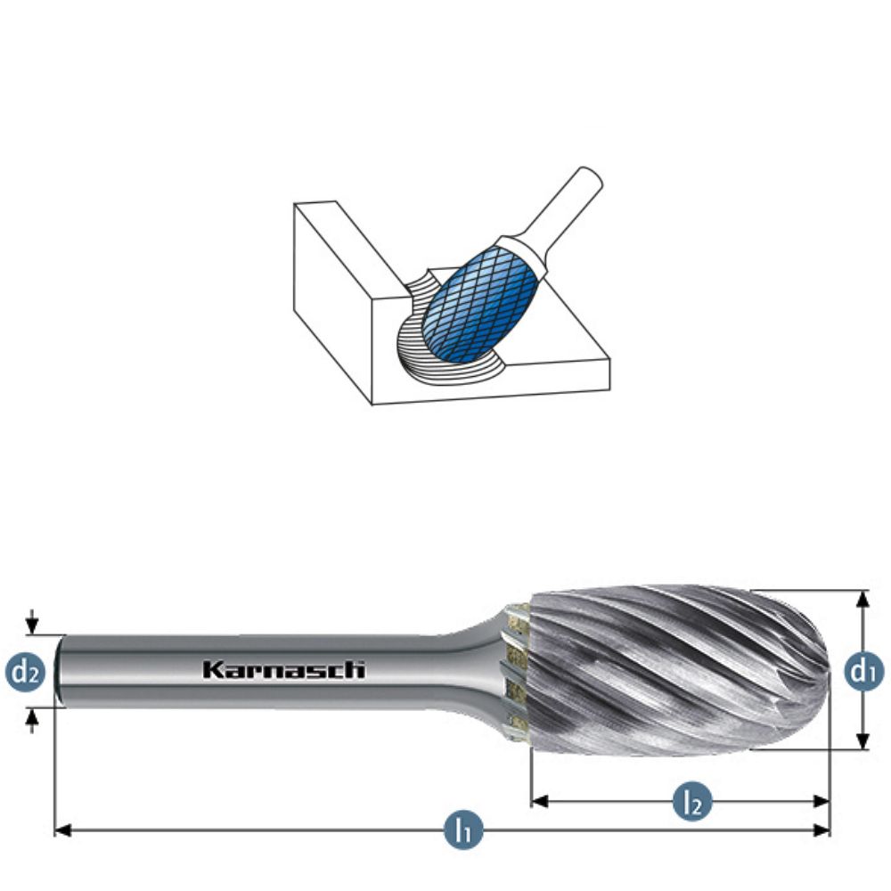 HM Frässtift, Ø=8,0-12mm, speziell für Edelstahl, TRE, Tropfenform, HP9