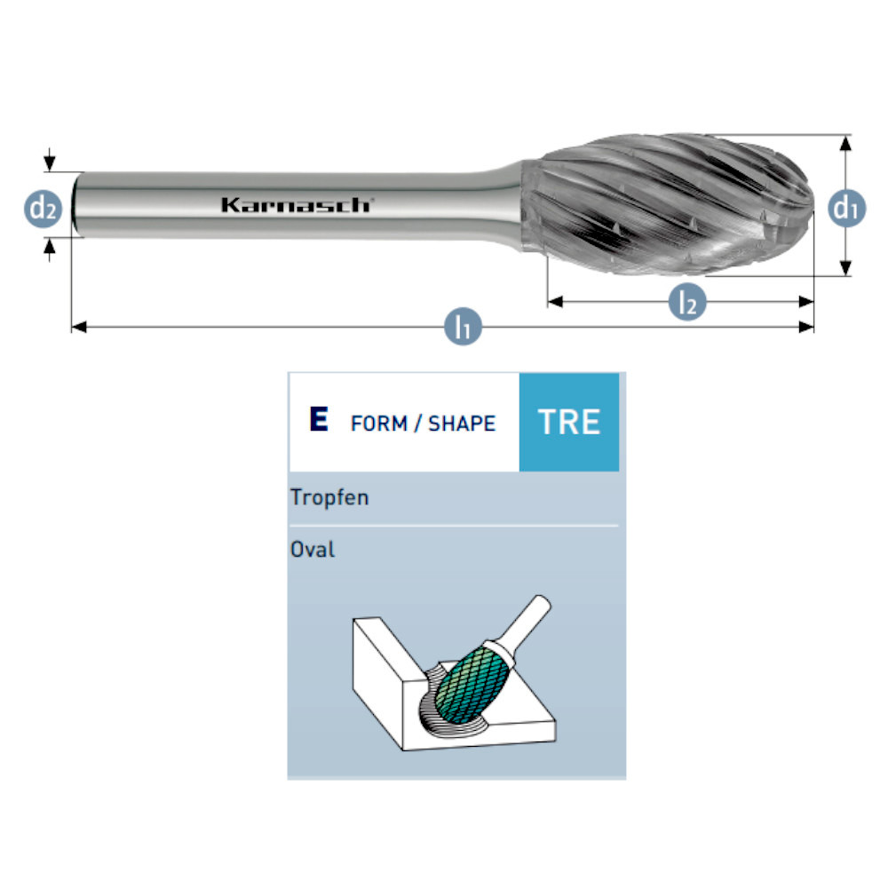 Produktinformationen "HM Frässtift, Ø=6,0-16mm, Serie 114094, Tropfenform, unbeschichtet HP3 PRO"