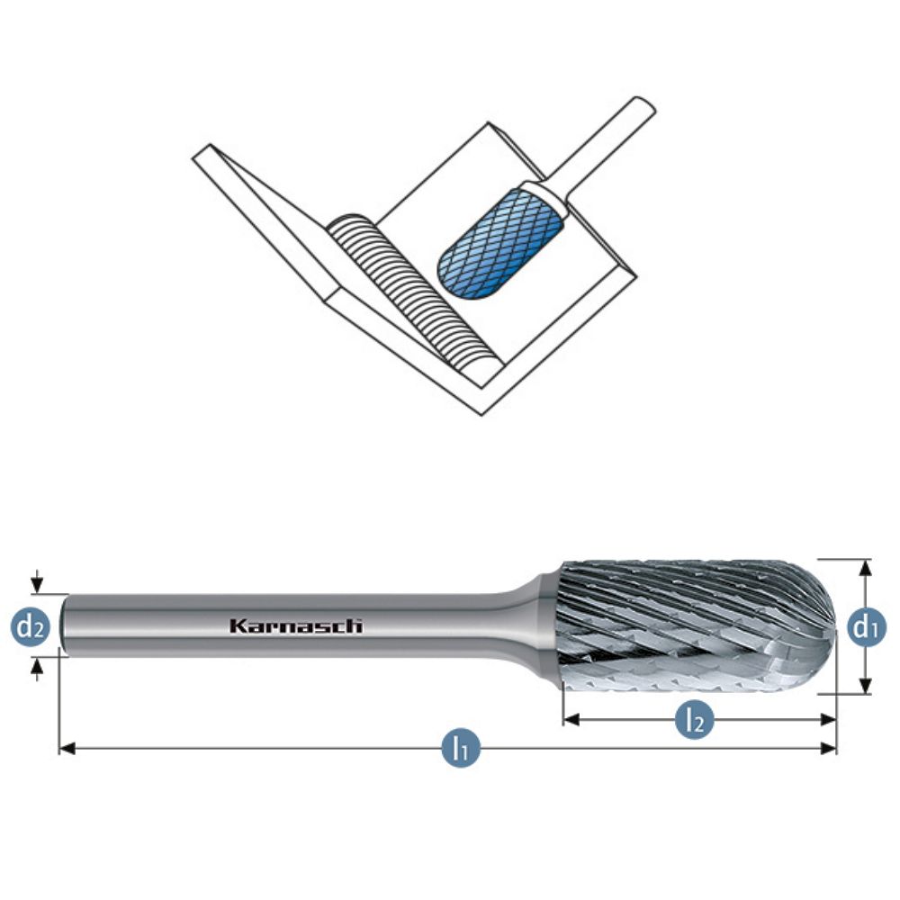 HM Frässtift, Ø=3,0-12mm, Serie 113027, Walzenrundform, unbeschichtet HP1