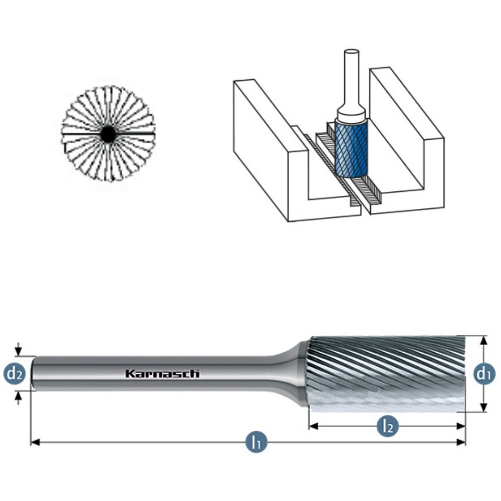 Produktinformationen "Zylinderfrässtift, Ø=1,5-16mm, Serie 113013, unbeschichtet"
