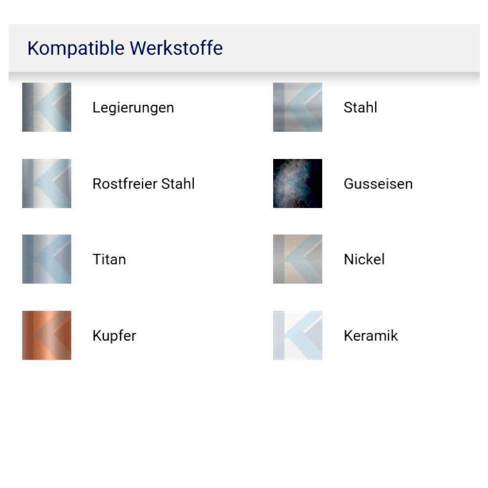 Bis zu extra harten Stählen ca. 70 HRC