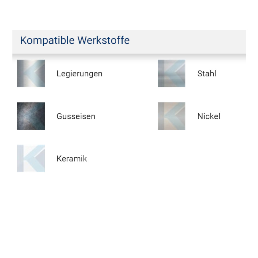 bis zu extra harten Stählen ca. 70 HRC, Gusseisen, Edelstahl [INOX].
