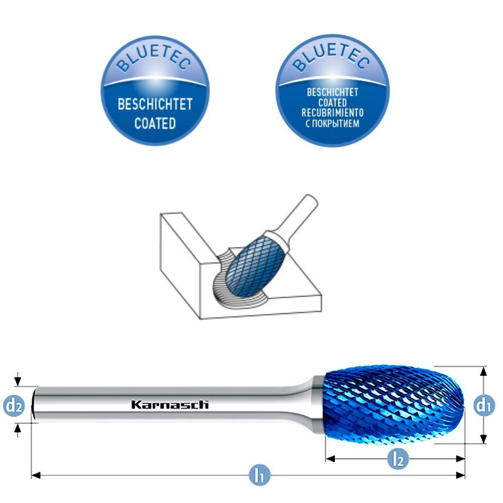 HM Frässtift Tropfen, Ø=8-12mm,116035, speziell für Edelstahl, Blue-Tec, HP-9, TRE