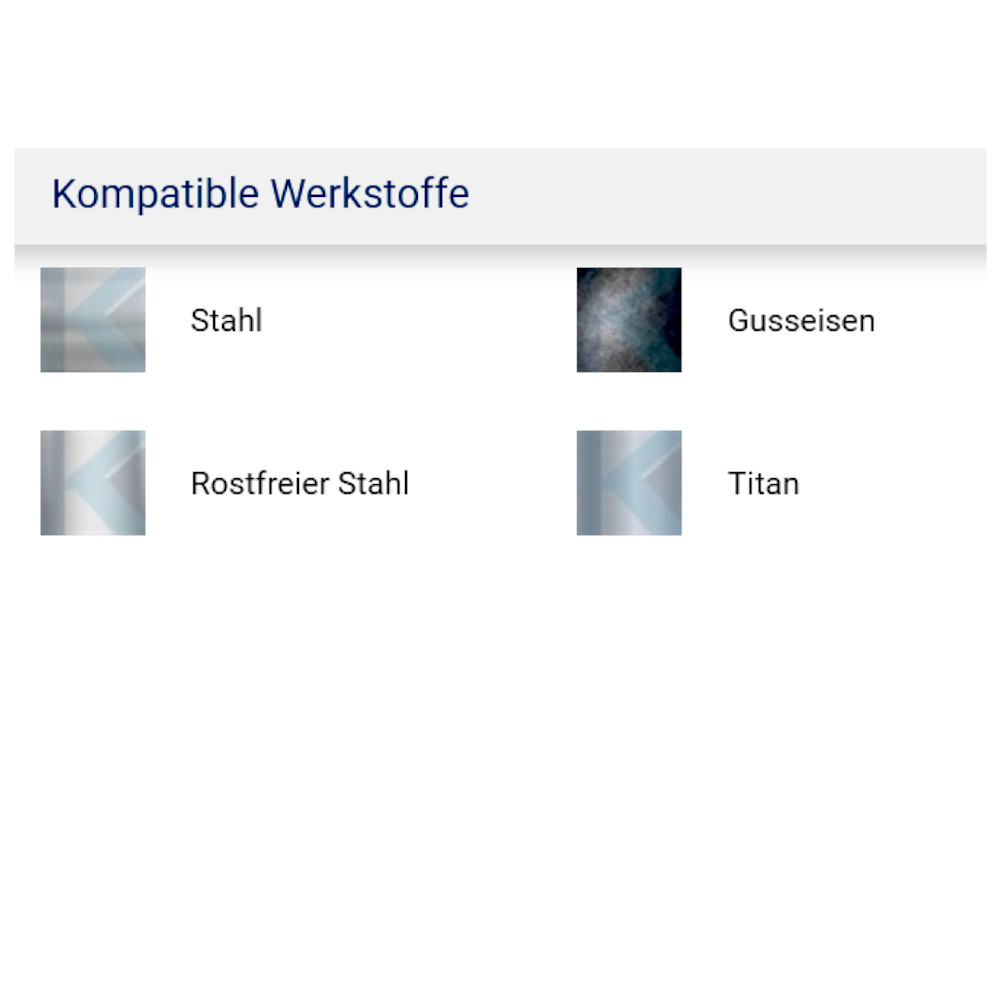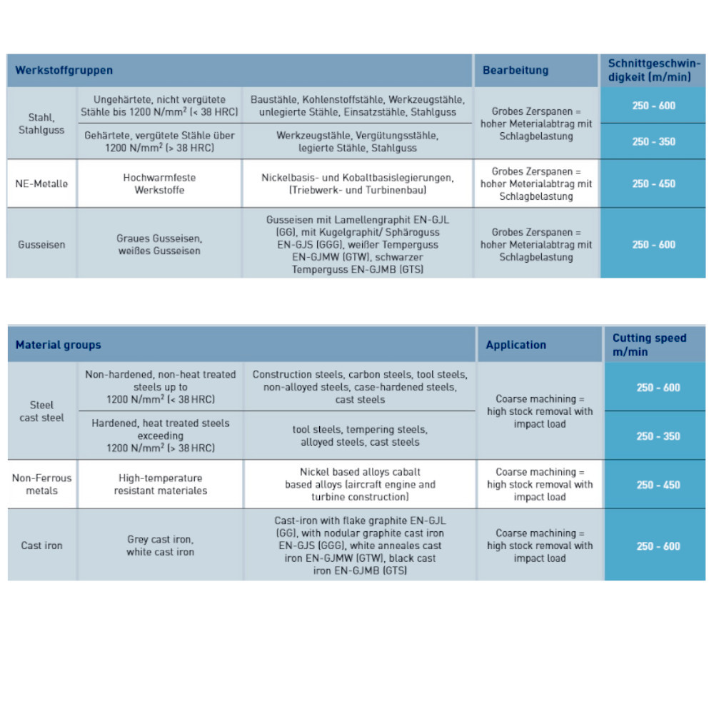 Für alle Stahlsorten wie: Gusseisen, Stahl < 60 HRC