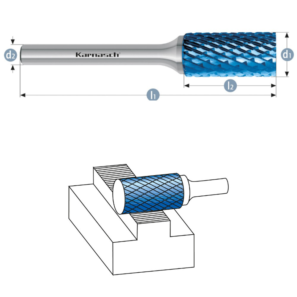 HM Frässtift Ø=6-12mm, 115004, ZYA extrem grob, HP-6, Blue-Tec beschichtet