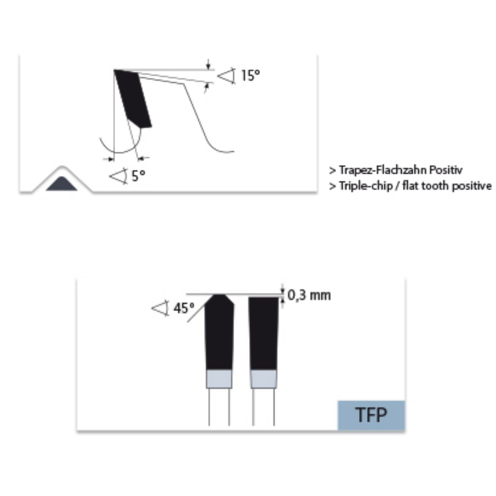 Achswinkel-Blätter für nahezu gratfreie, sauberste Schnitte und höchste Standzeiten in Fensterprofile aus PVC (auch glasfasterverstärkt-GFK)