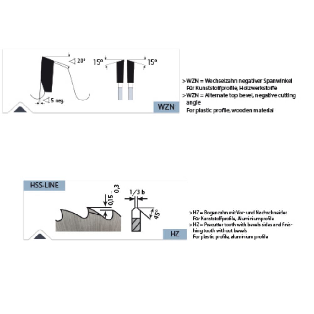 Produktinformationen "HM-Blatt Kreissägeblatt für Holz, PVC, NE Metalle, Glasleisten Kreissägen, Ø 92 - 250 mm WZ, FL, WZN"