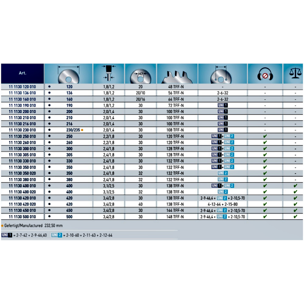 - Geeignet für Kappkreissägen, CNC-Bearbeitungszentren, Radialarmsägen, Hand- und Tauchsägen
