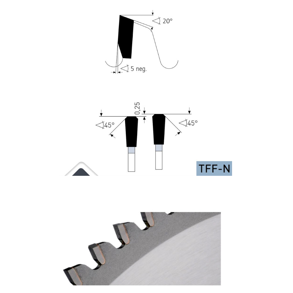 Durch den negativen Spanwinkel eignet sich das Kreissägeblatt besonders für