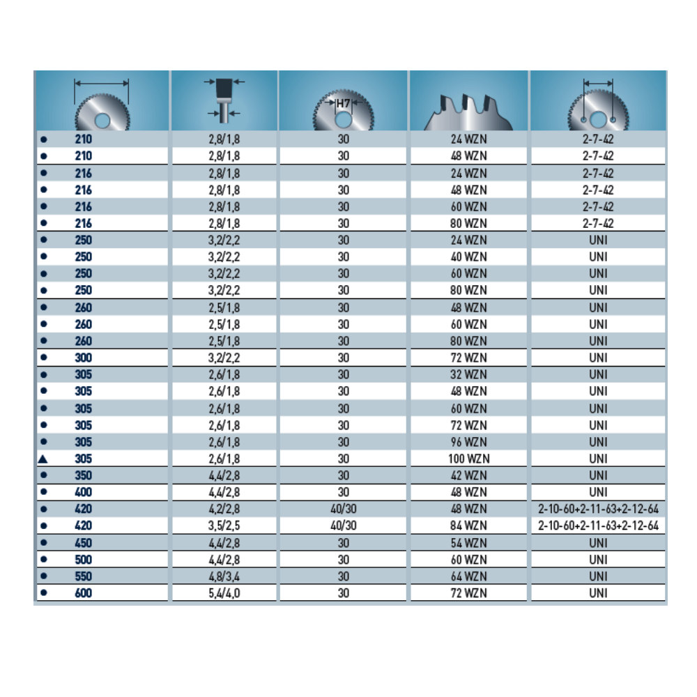 Spezialprogramm für Kapp- und Gehrungssägen, Radialkreissägen, Pendelkreissägen, oben liegende Kappkreissägen, Tischkreissägen, Abbundanlagen.