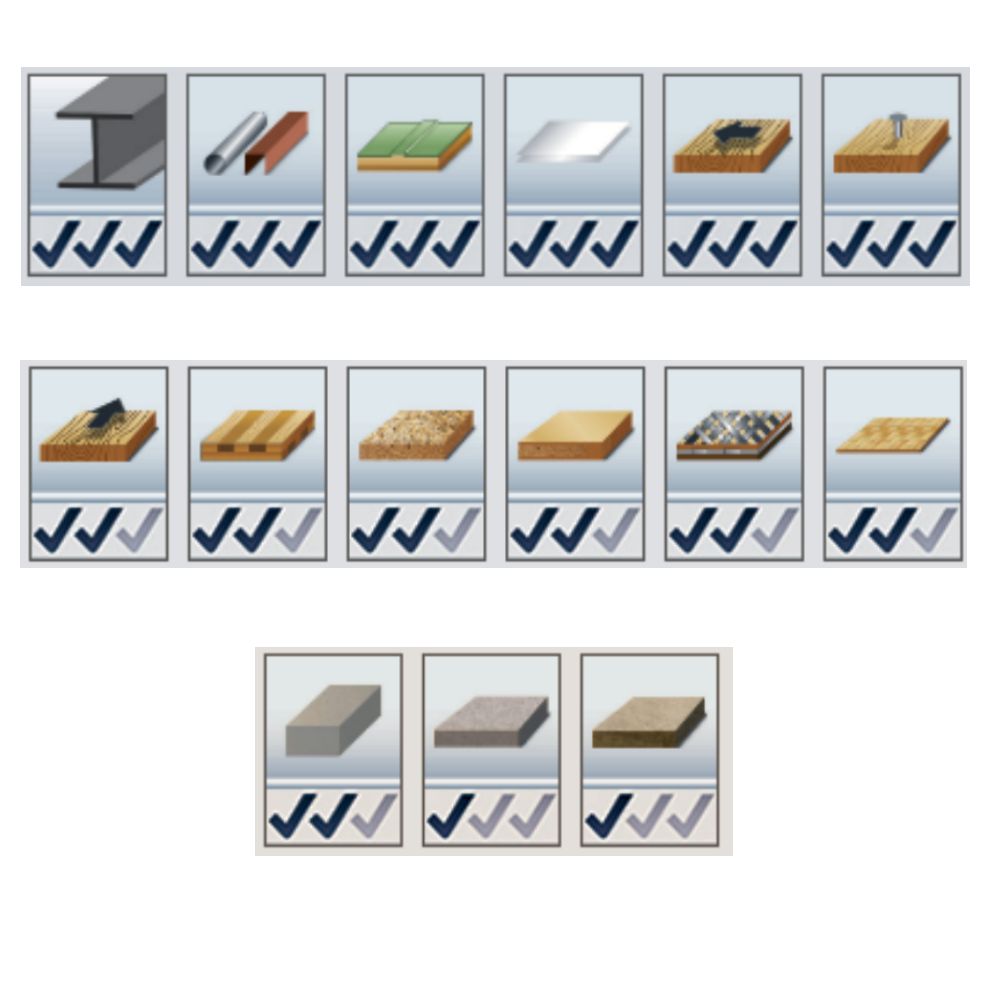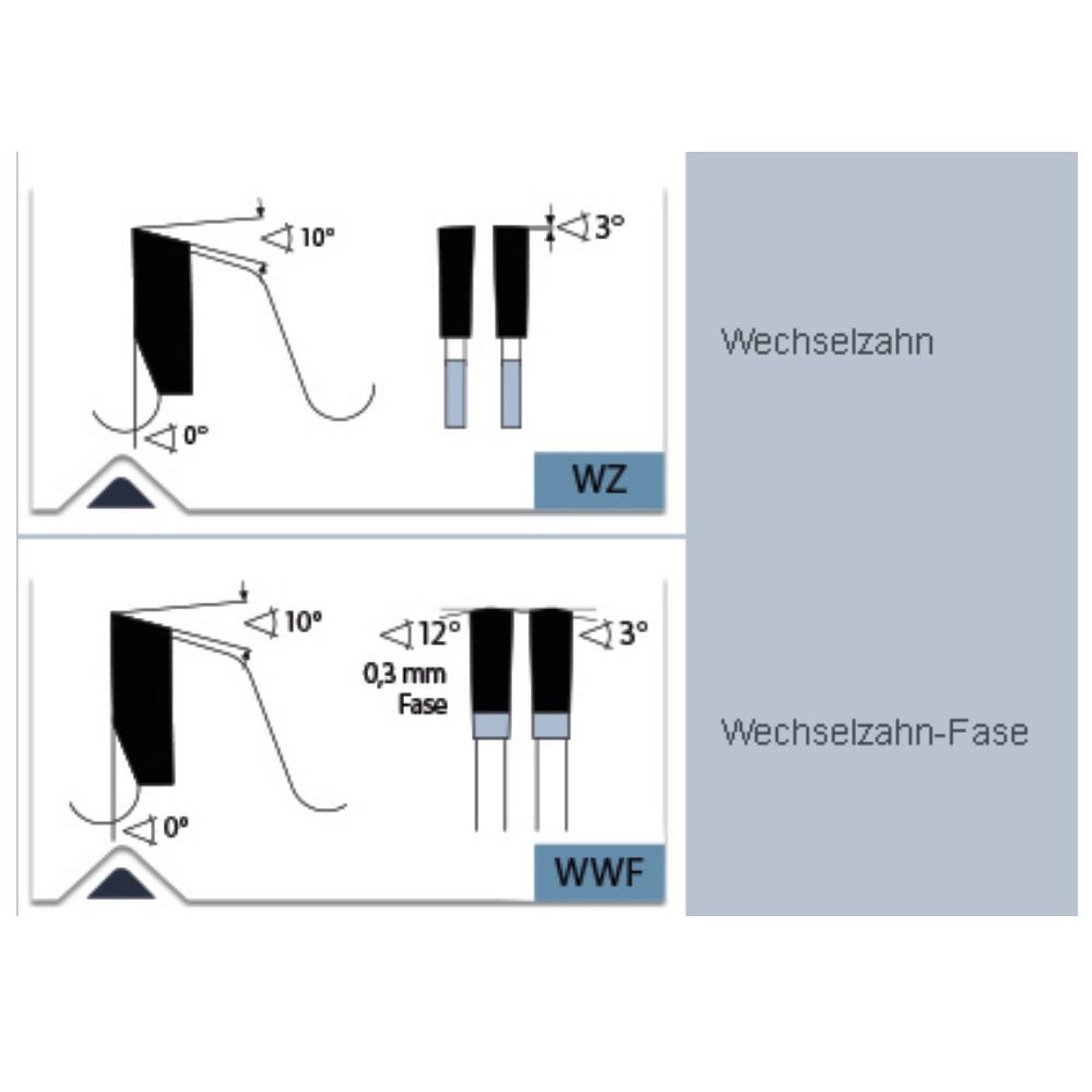 Höchste Zähnezahl: Zum Trennen aller angegebenen Materialien. Vorzugsweise für alle Metalle, wie Baustähle, Alu, NE-Metalle, Holz, Gasbeton