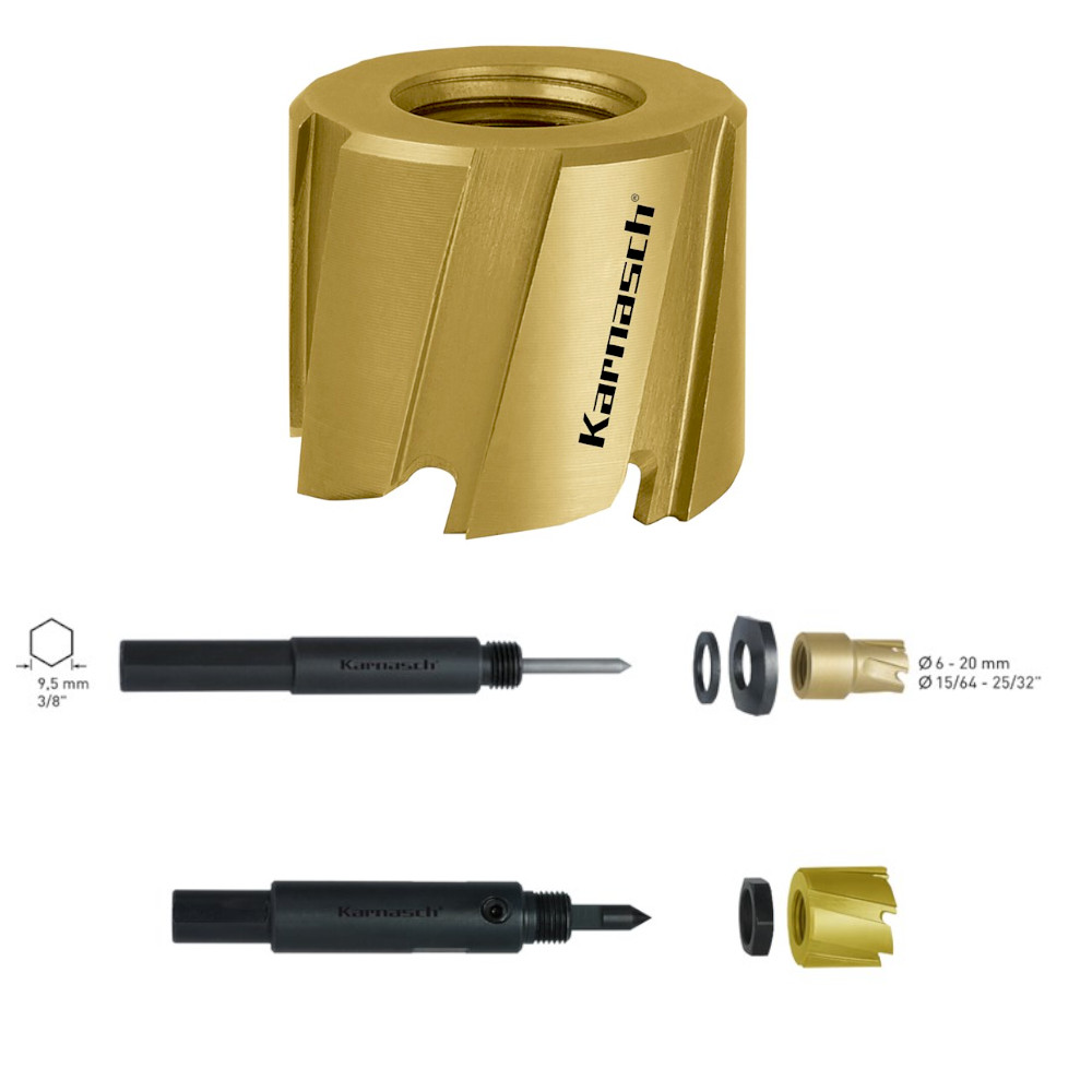 Bohrt in dünnste Bleche sowie Platten mit bis zu 13 mm Stärke. Bohrt in Flachmaterial und Rohre aus.