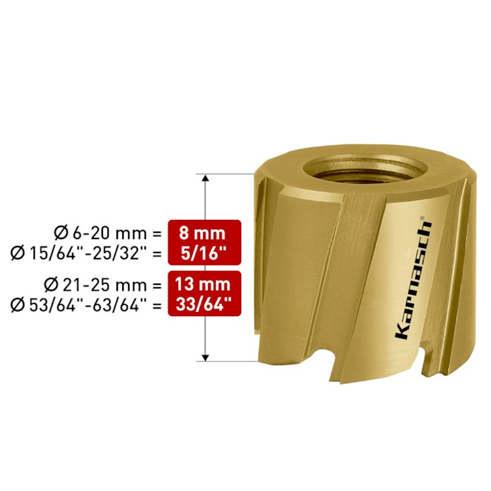 Produktinformationen "Lochsäge HSS-M2 + TIN beschichtete, Mini-Cut Nutzlänge 8-13 mm, Ø 6-25 mm"